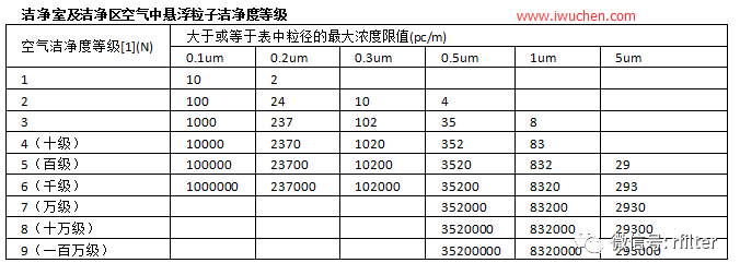 备注: 1963年,美国出了个洁净室标准FED-STD-209,在这项标准中,按每立方英尺中≥0.5μm粉尘数量的最高允许浓度,将洁净室分成若干等级,如100级、1000级、10000级。长期以来,世界上许多国家都是按这个方法分级的,中国过去的洁净室标准也是按这个方法分级的。