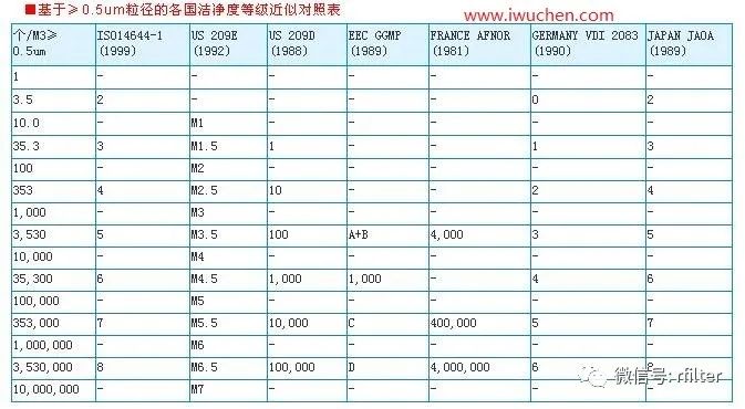 基于≥0.5um粒径的各国洁净度等级近似对照表其他洁净度标准(洁净手术室等级标准)